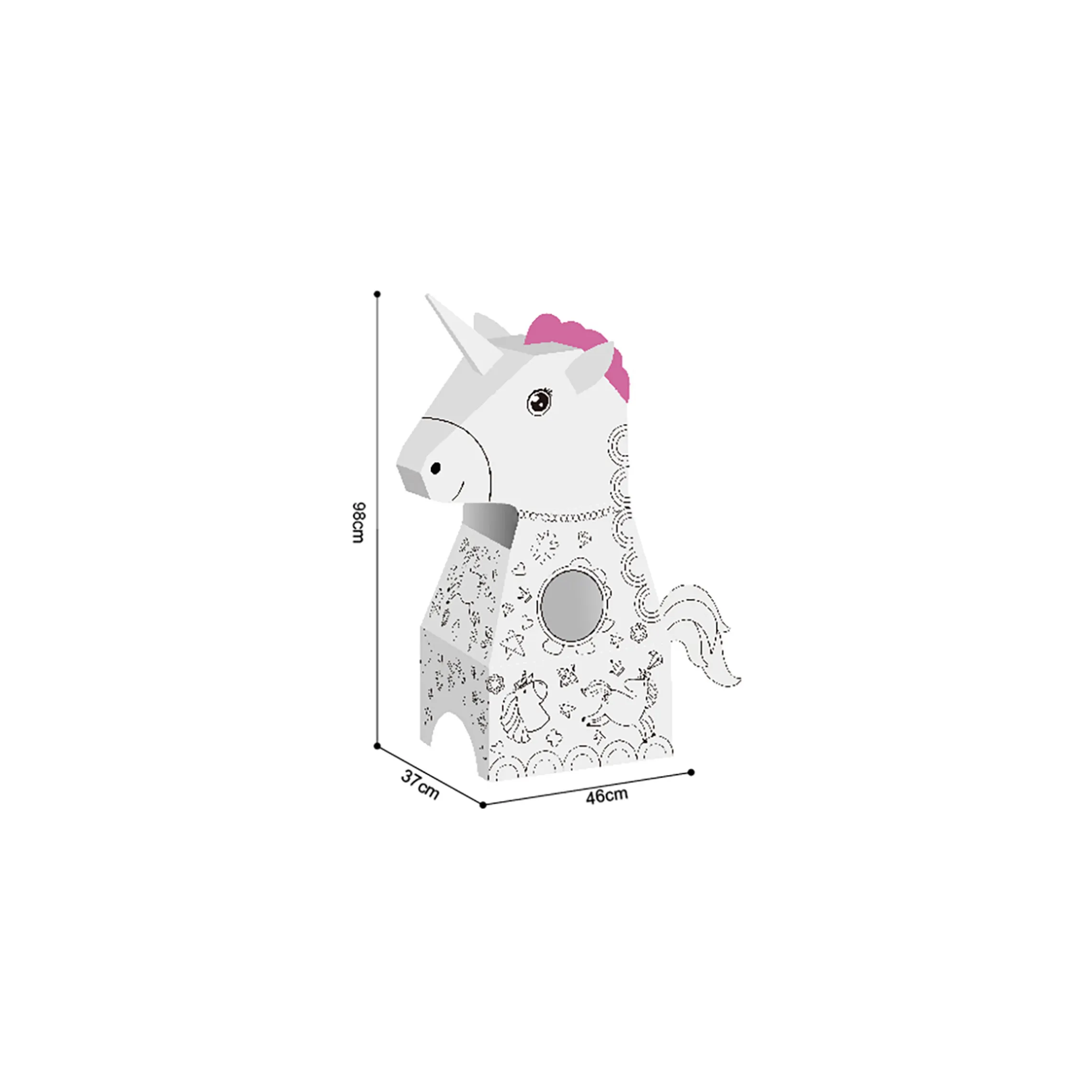 Once assembled, children can wear the unicorn and role-play, perform, or play with friends. This wearable cardboard toy transforms creative crafting into imaginative storytelling and social interaction.
