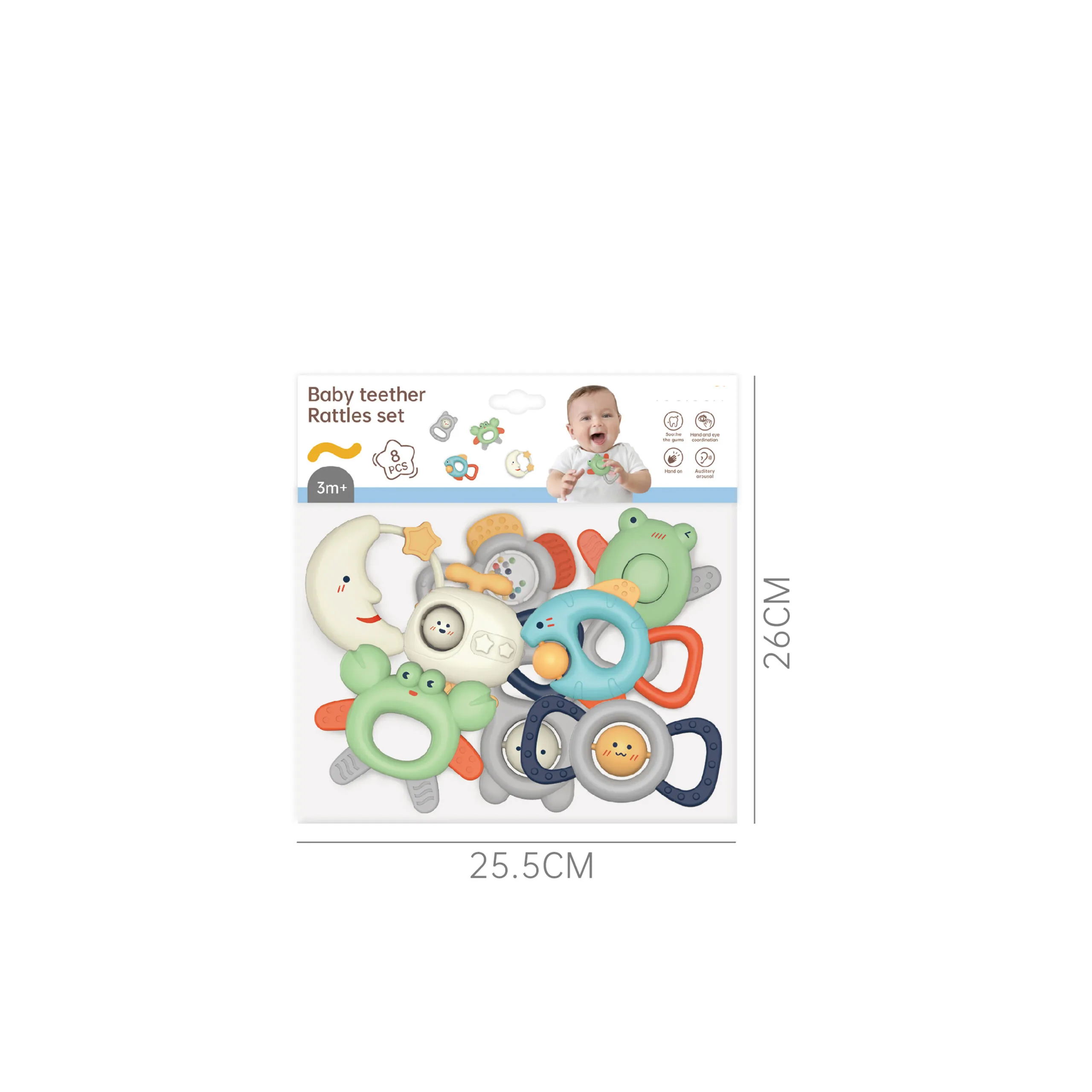 Welcome to the ultimate guide for parents seeking a safe, fun, and effective baby teether rattle set. Our 8-piece Baby Teether Rattles Set (EE-878-8) is designed to provide teething relief, stimulate sensory development, and support early hand-grip growth for infants aged 3 months and above. 🎉