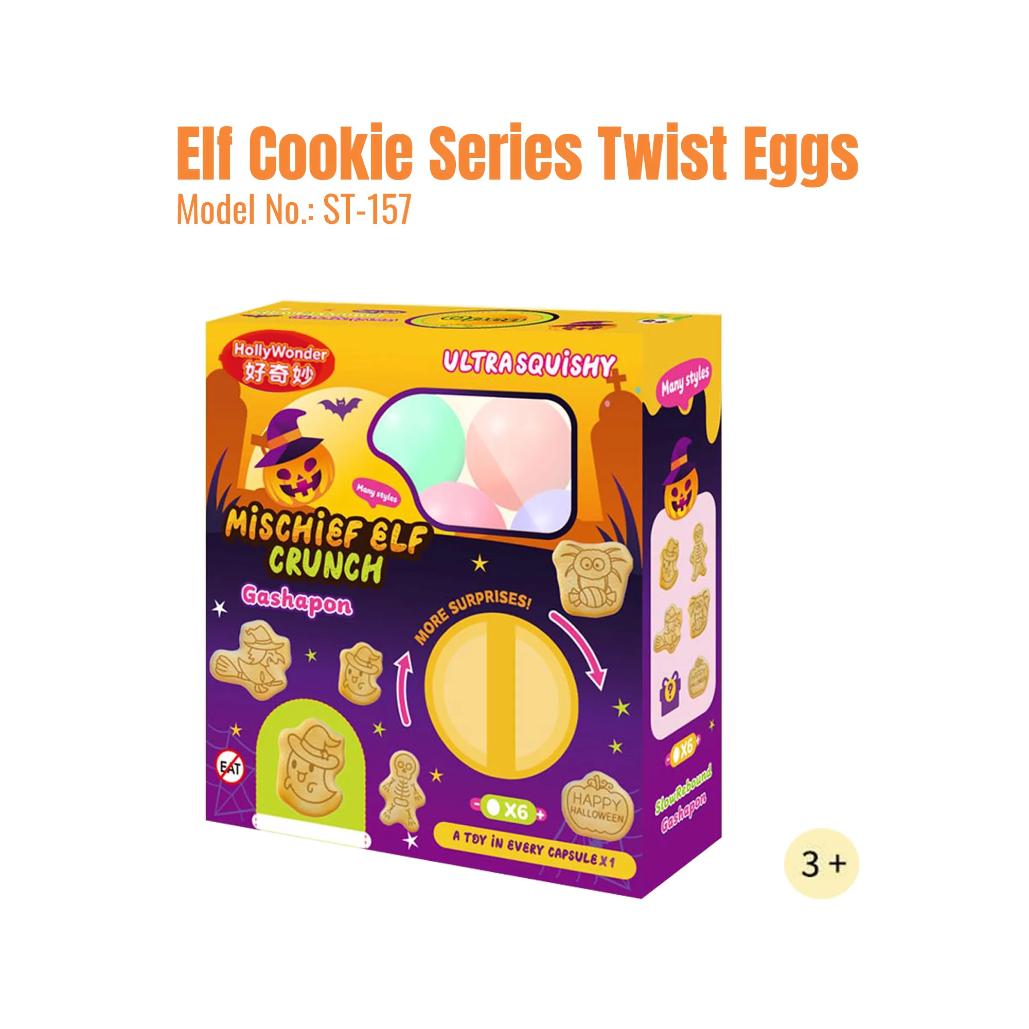 Elf Cookie Twist Eggs combine playful design, slow rebound PU material, and collectible surprise fun — ideal for party favors, classroom rewards, and Halloween treats. Each capsule contains one twist egg (43 × 42 × 22 mm) made of soft PU foam engineered for a satisfying slow rebound sensation. 🧸✨