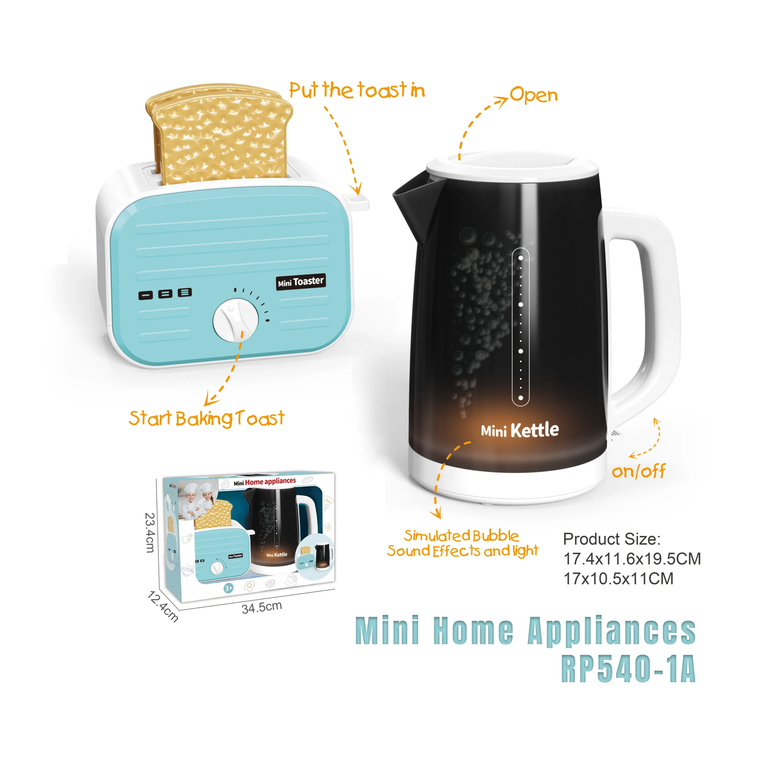 The RP540-1A mini home appliances toy set brings realistic pretend play to life — a RP540-1A toaster that pops up bread toy plus a RP540-1A kettle toy with boiling sound and light. Designed for joyful, safe, and durable play. ✨