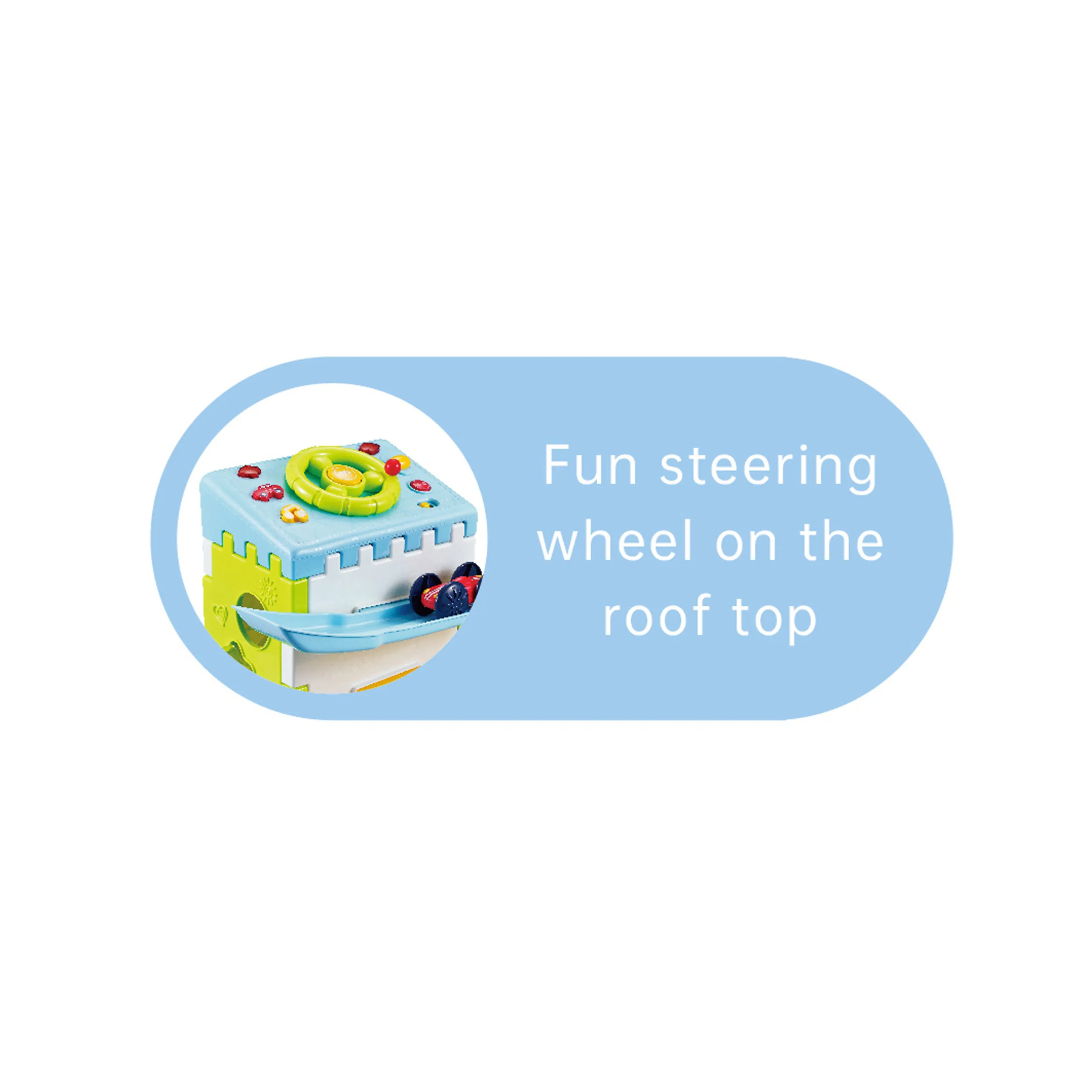 Bring adventure and learning together with the Multi-Play Racetrack Activity House. Designed as a compact kids activity house, this 5-in-1 play center combines hands-on discovery, music, and safe physical play to help your child aged 3+ develop motor skills, problem-solving, and early language. Perfect for preschool learning and fun.