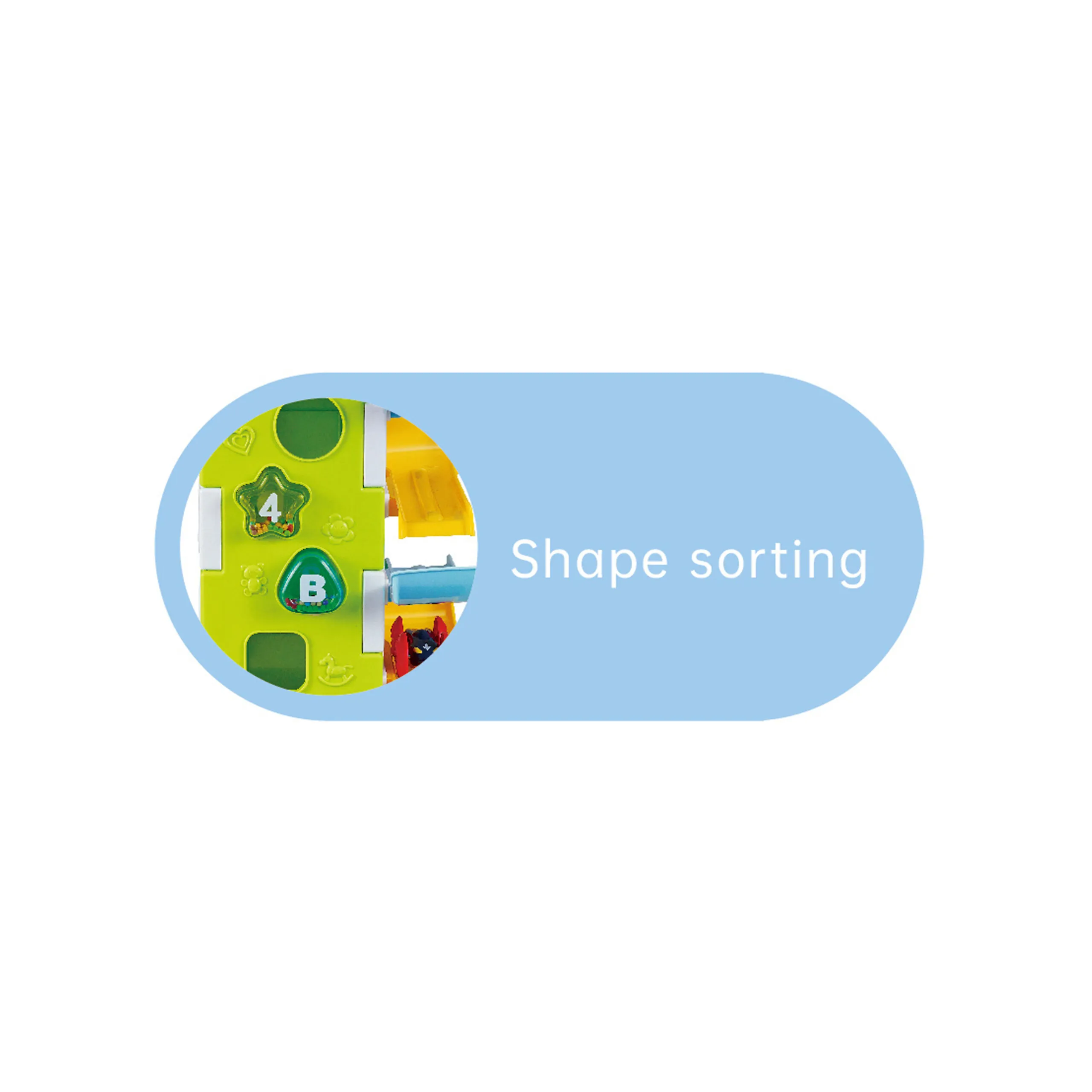 - Early fine motor practice: Shape sorting and racetrack play support finger dexterity and coordination.