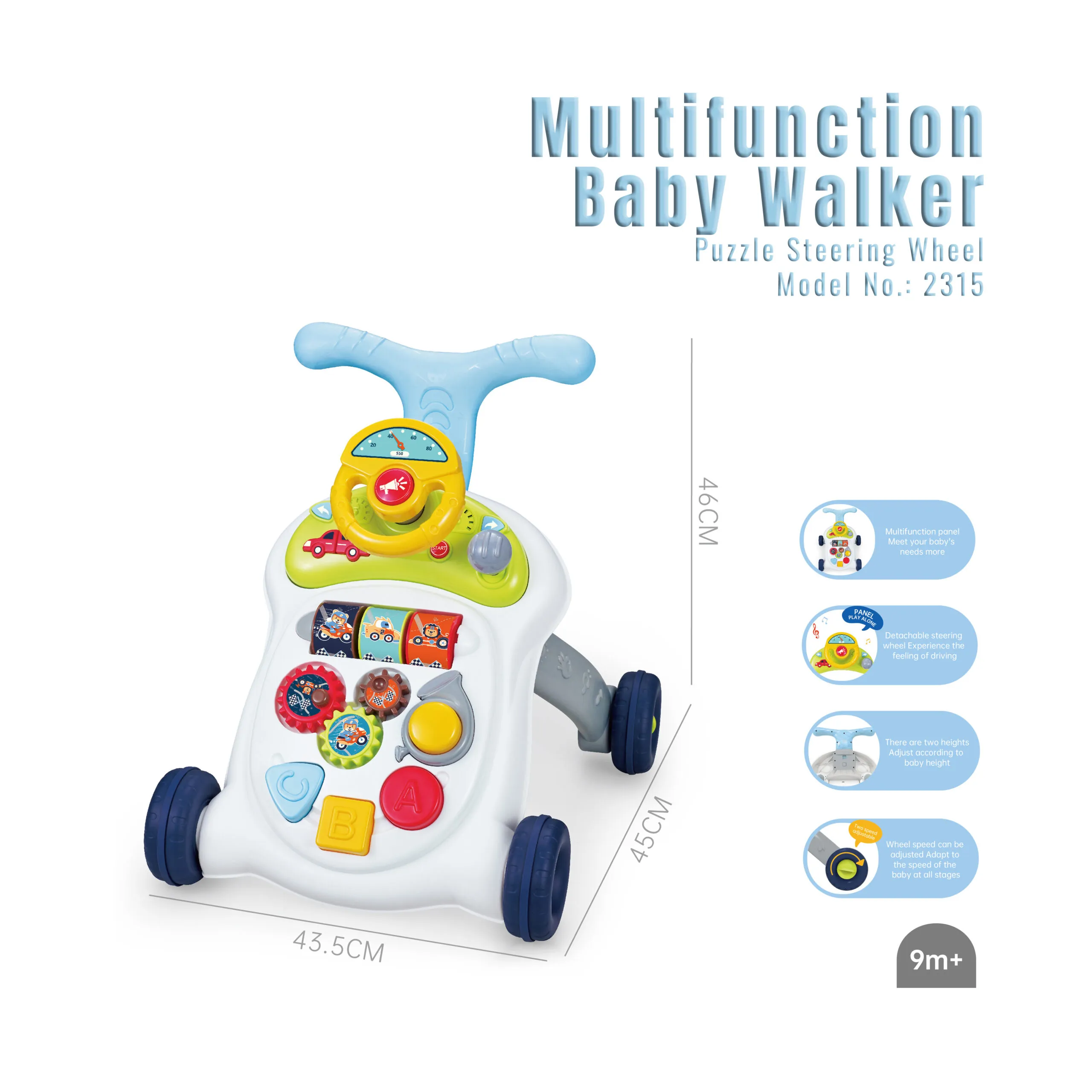 Introducing the EE-2315 Multifunction Baby Walker – designed to provide your little one with endless fun, learning opportunities, and a safe walking environment. Perfect for babies aged 9+ months, this walker is the ideal combination of education, play, and comfort. 🌟