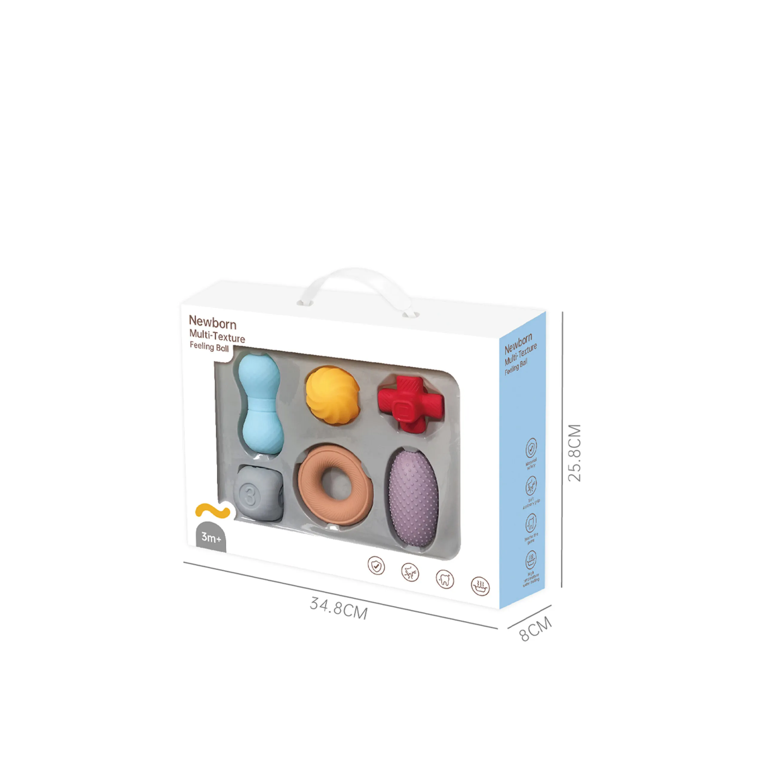 Designed for your peace of mind, the Newborn Multi-Texture Feeling Ball is safe to boil in water, non-toxic, and durable — built to last through multiple teething stages.