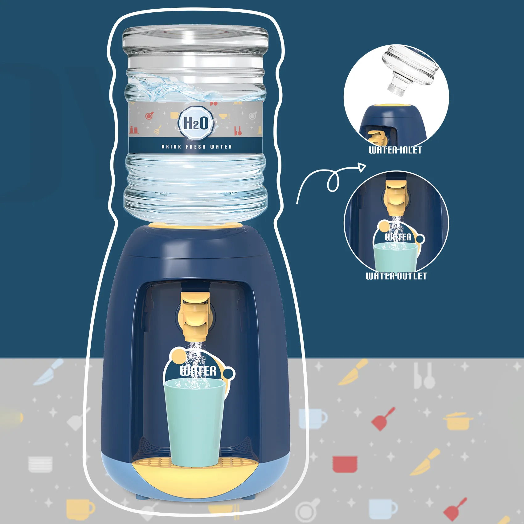 Product Highlights — Compact mini water dispenser toy for kids
