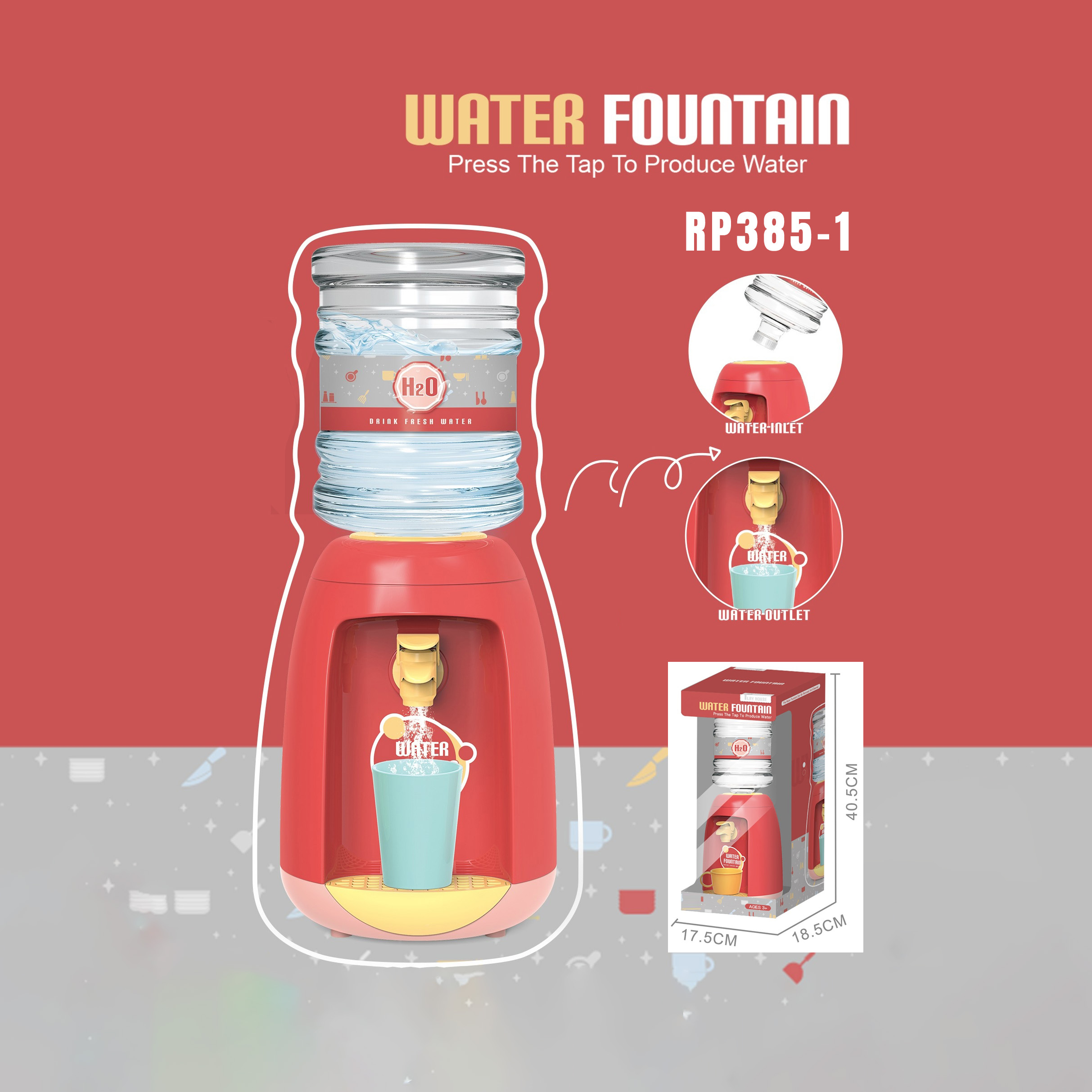 Mini Water Dispenser Toy RP385-1 — Realistic Water Fountain Toy for Kids