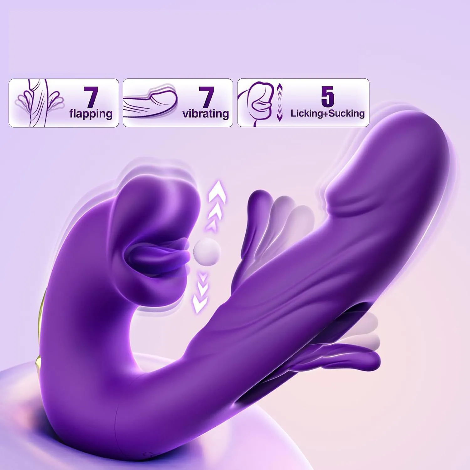 Triple-action stimulation: flapping, vibration, and licking modes