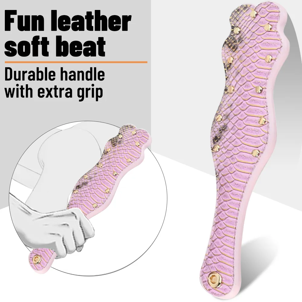 Crafted from high-quality PU leather with a striking snakeskin texture for a sensual feel and lasting durability. The kit’s champagne gold hardware elevates the look for a truly refined experience.