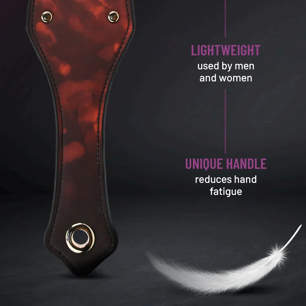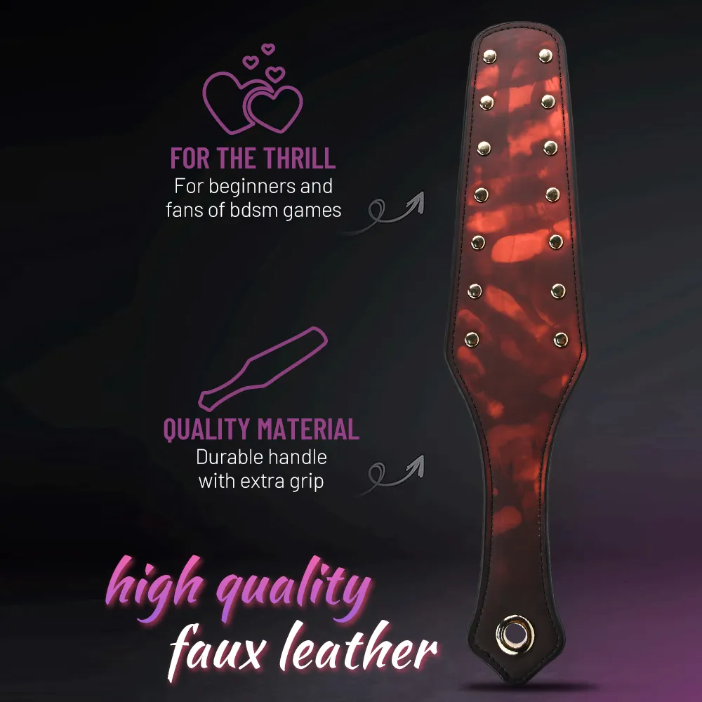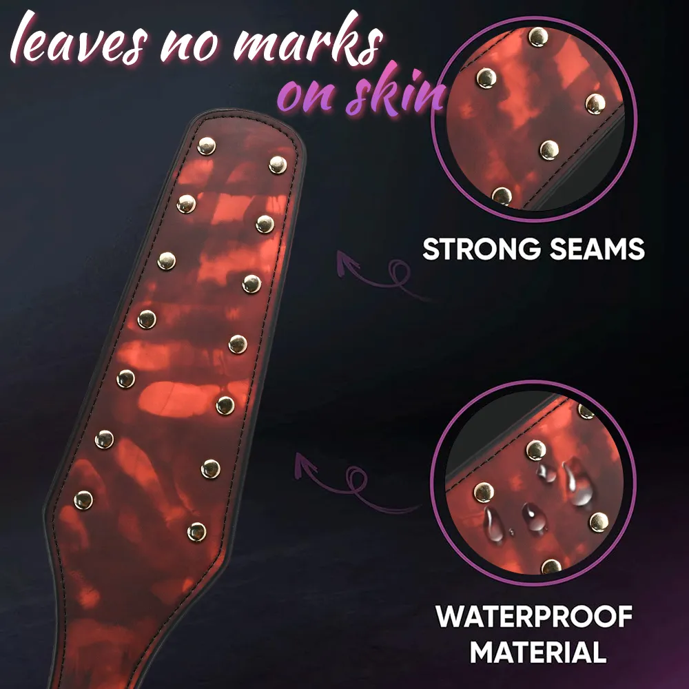 Premium faux leather paddle with color-change heat response, ergonomic grip, and lightweight design — crafted to deliver thrilling sensations while protecting the skin.