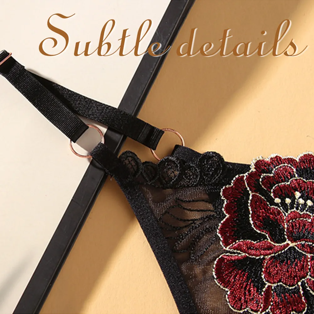 - 🔹 Elegant Lace Design: Black lace tanga featuring a sensual red rose motif at the front.