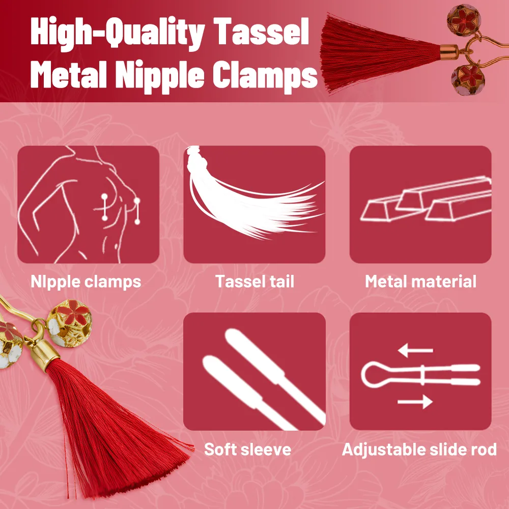 Made from metal and delicate tassel threads, these clamps provide durability and elegance. The electroplating process ensures long-lasting shine and prevents fading, so your intimate toys always look luxurious. 💎