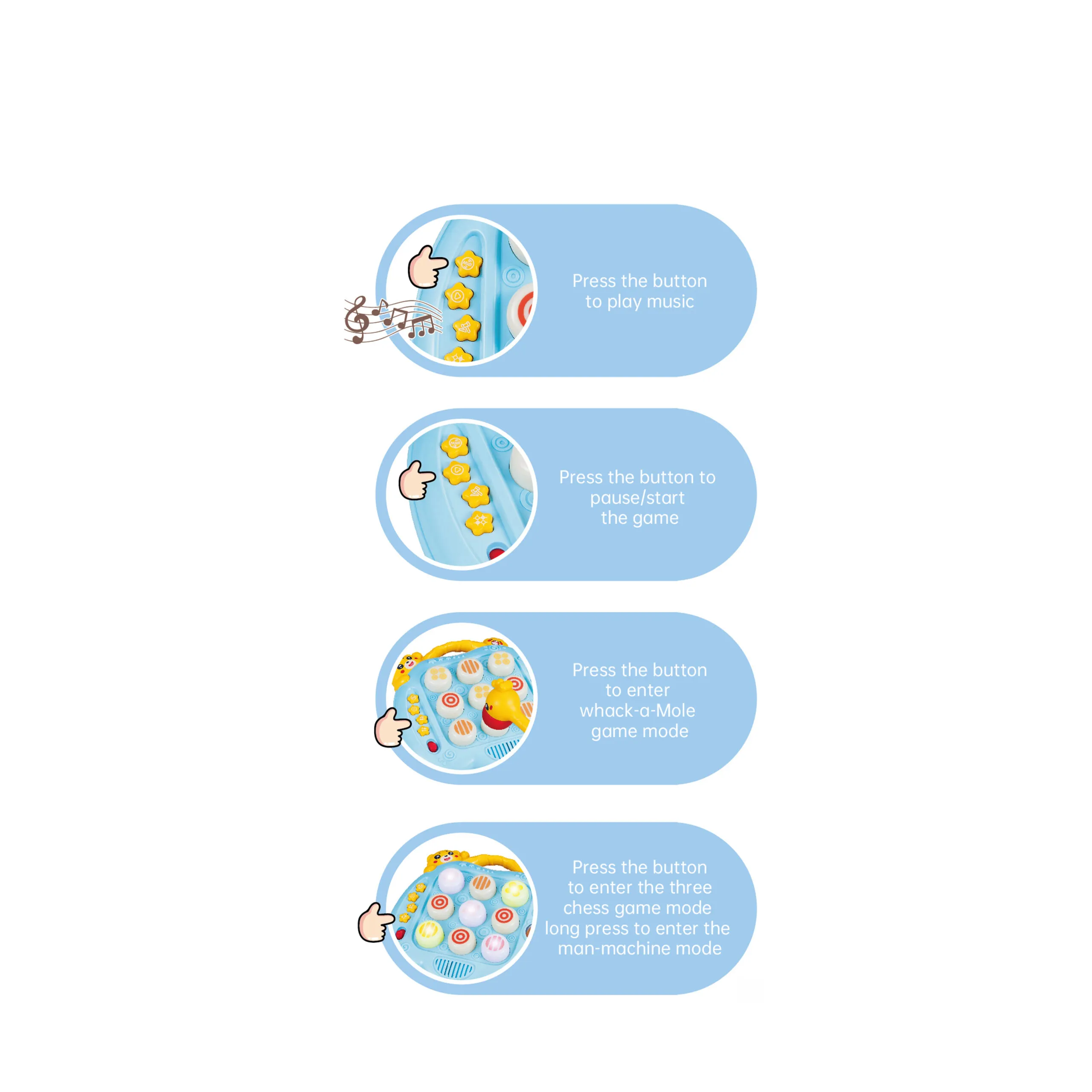 Press the designated button to start Whac-A-Mole mode. React quickly and hit the moles as they pop up. Challenge your toddler’s speed and reflexes!