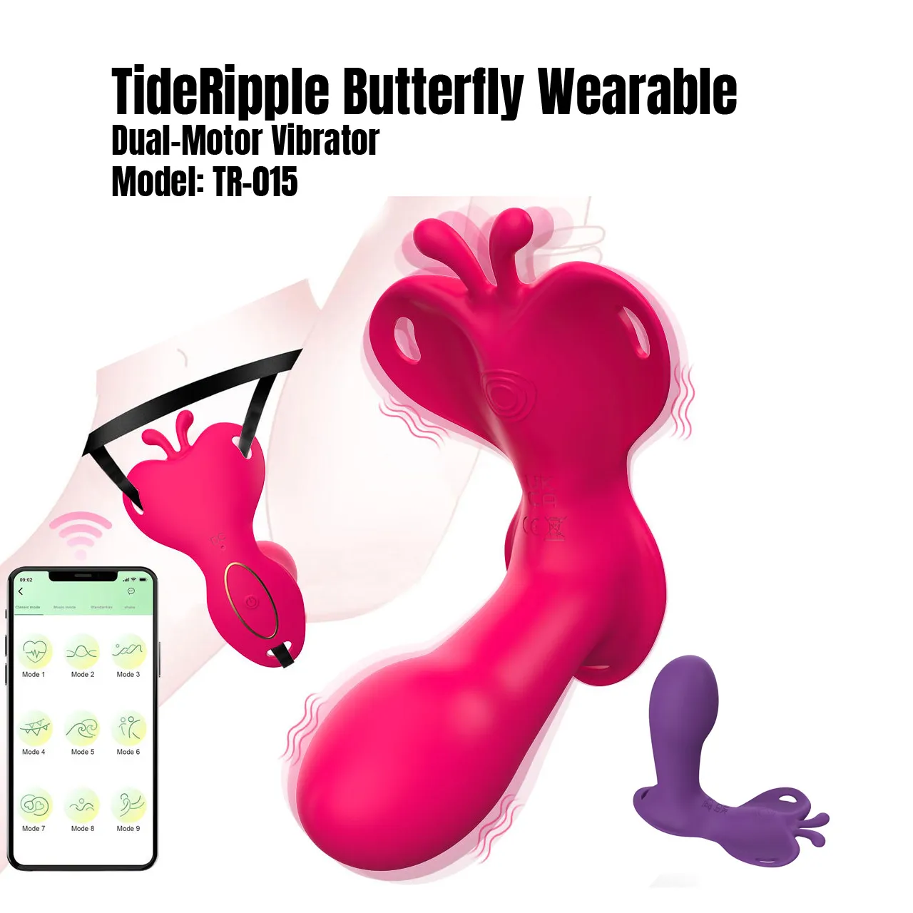 The TideRipple Butterfly Wearable Dual-Motor Vibrator is designed to solve common frustrations such as poor fit, weak vibration, and limited control—while enhancing everyday intimacy with a sleek, modern design.