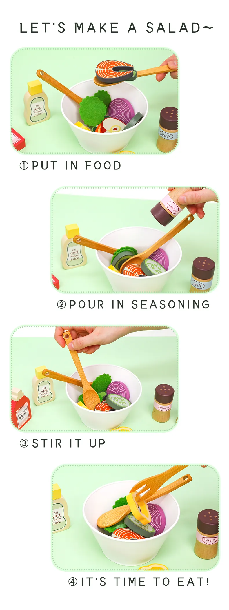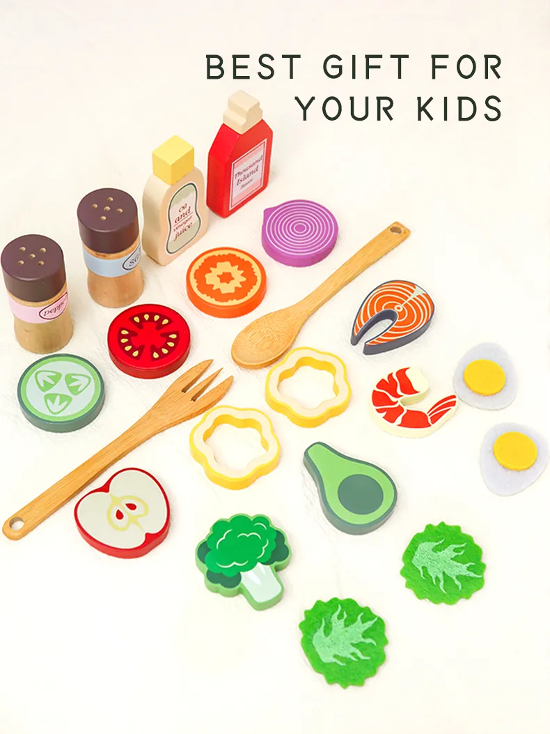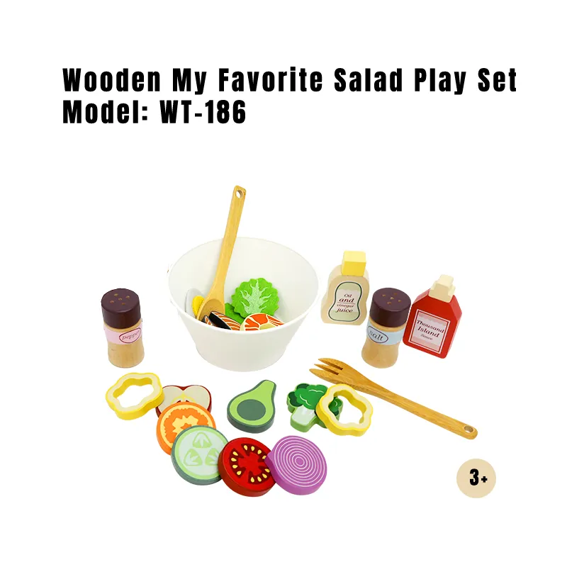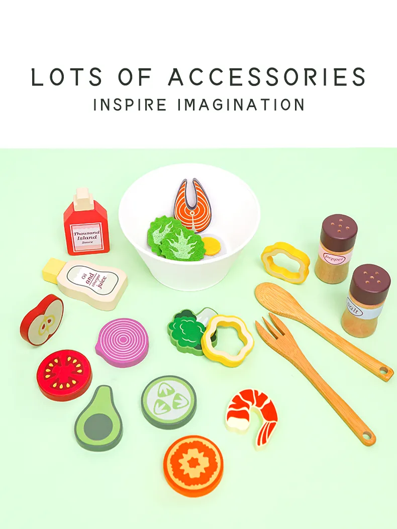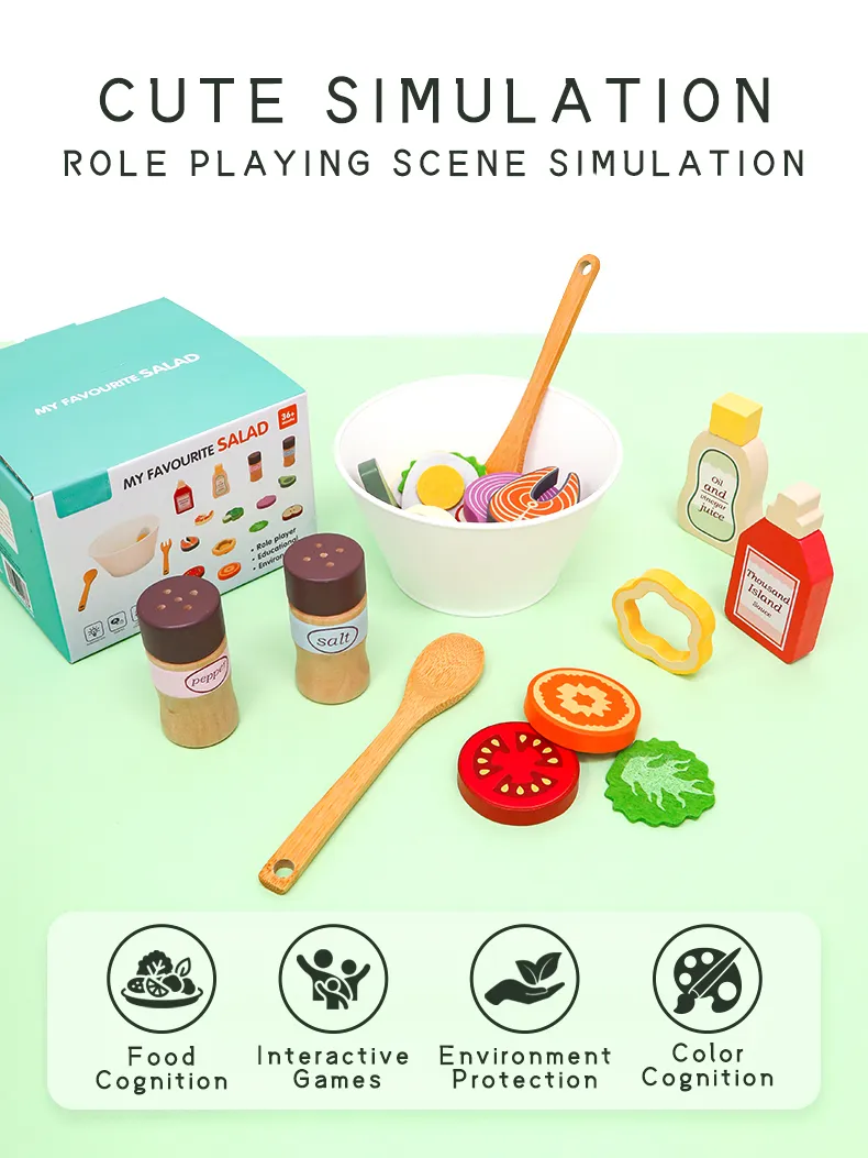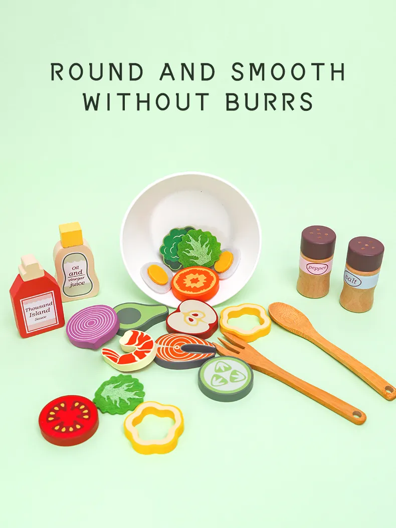 Parents often struggle to find toys that are both fun and educational. The Wooden My Favorite Salad Play Set solves this by: